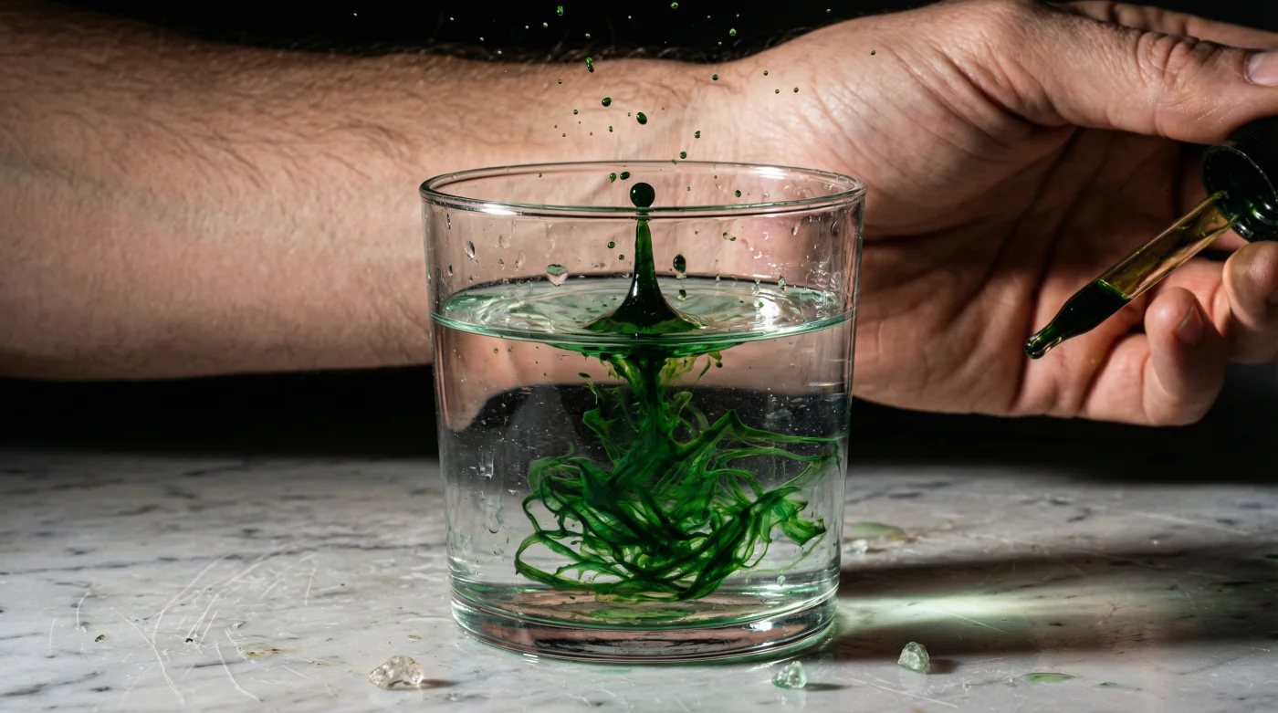 Imagine your kitchen counter at 7:00 AM. The coffee pot is quiet, the house is still, and the early light catches a tall glass of ice water. You watch as a dropper dispenses an emerald-green liquid, blooming like dark ink in a glass. This is the morning wellness ritual broadcasted across millions of screens—the promise of cellular energy and a radiant, detoxified complexion.